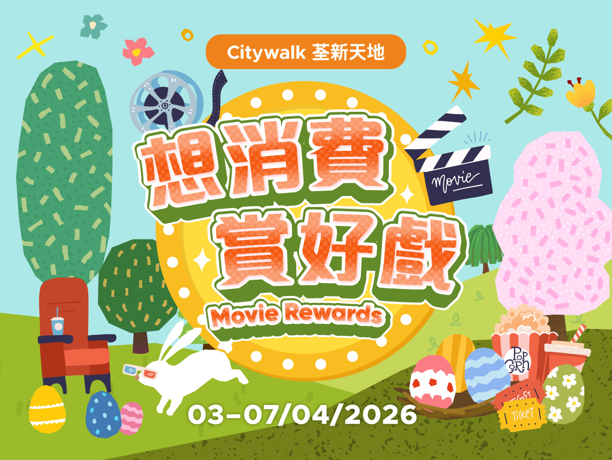 From3-7 April 2026, S+ REWARDS members may redeem Emperor Cinemas Movie Vouchers for free upon same-day single electronic spending of designated amount at Citywalk designated merchants. (Daily quota applied. Available on a first-come, first-served basis.)