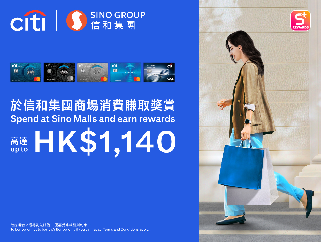 由2025年11月1日至12月31日,Citi信用卡客戶於9大信和集團商場¹購物,即可尊享豐富獎賞!同日消費滿HK$1,000或以上(最多兩張收據)²,並於指定商場禮賓處成功登記點數,即可獲得高達HK$1,140獎賞³。